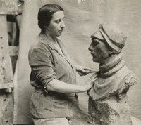 The Canadian sculptor of American descent at work in this National Gallery of Canada photograph. Loring, notes the National Gallery, was instrumental in expanding the role of women in art. The artist studied sculpture in Munich, Geneva, and Paris before studying at the famed Art Institute of Chicago, and in Boston.