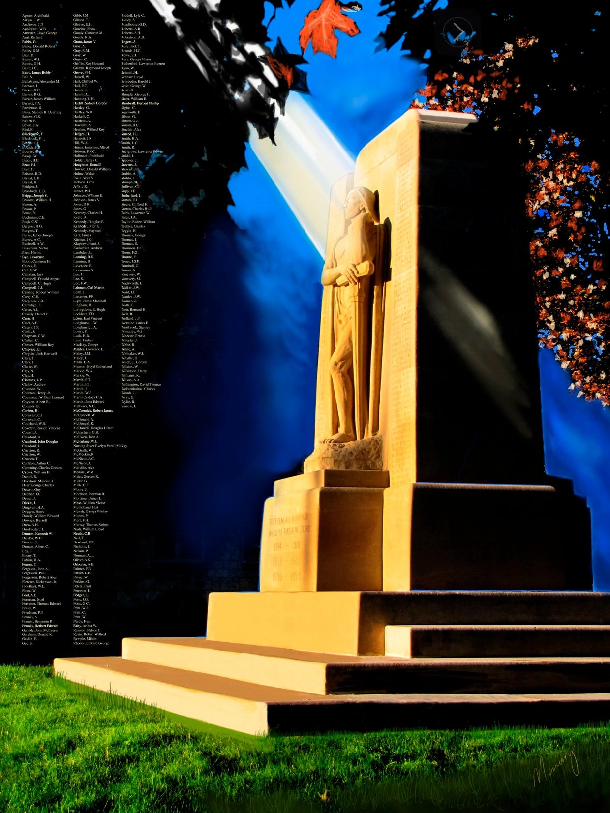 This artwork depicting Galt's Cenotaph shows each of the more than 300 names that are inscribed on the memorial.